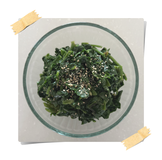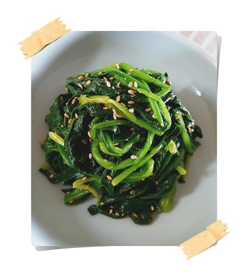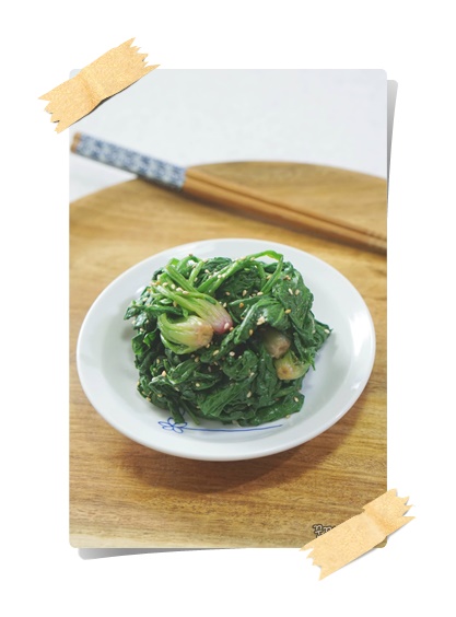 - 참기름은 마지막에 넣어야 시금치가 기름을 흡수하면서 더욱 고소한 맛이 난다.