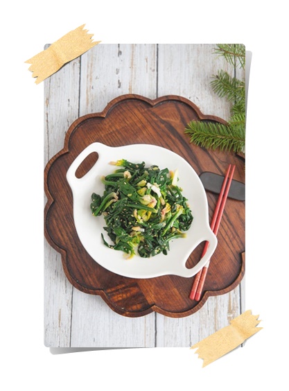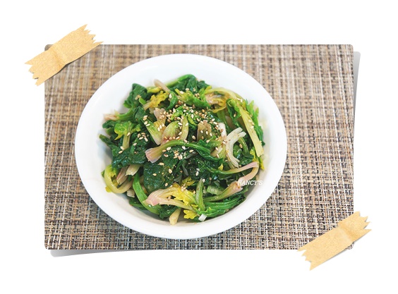 - 들깨가루 1작은술을 추가하면 더욱 고소하고 부드러운 나물이 된다.