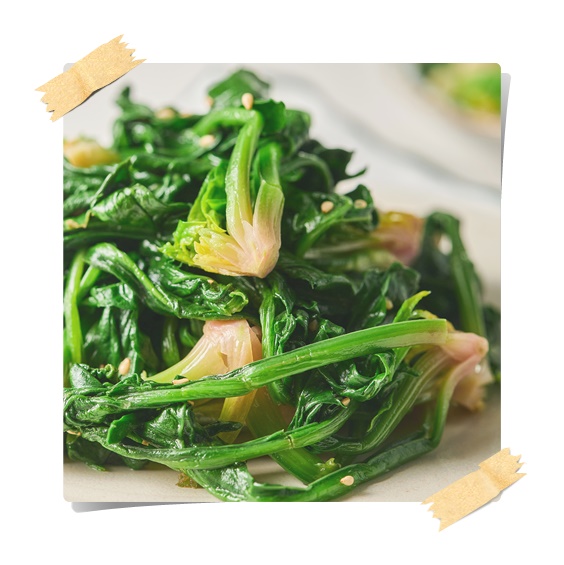 - 뿌리 부분이 더 단단하므로, 먼저 뿌리 부분만 넣고 약 10초 정도 익힌 후 잎 부분을 넣는다.