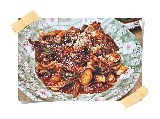 → 쭈꾸미나 고기 찍어 먹으면 꿀맛이에요.