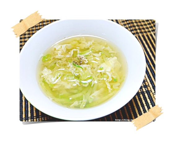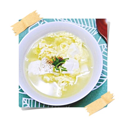 휙휙 저어주면 뽀얗고 부드러운 쑥달걀국 완성!