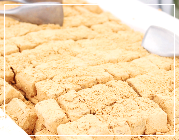 - 익힌 찹쌀 반죽을 식힌 뒤, 작은 크기로 떼어낸다.